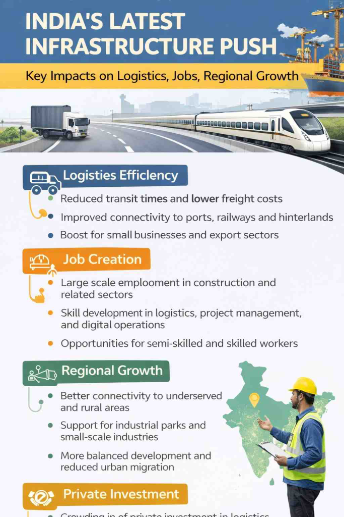 New Delhi: India’s renewed focus on infrastructure development is beginning to show tangible effects across logistics networks, employment generation, and regional economic balance. With sustained public investment in roads, railways, ports, airports, and digital infrastructure, the government is positioning infrastructure as a long-term growth engine rather than a short-term stimulus. The impact is increasingly visible not only in major urban centres but also in Tier-II, Tier-III, and rural regions.