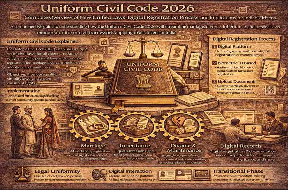 The Uniform Civil Code (UCC) is set to become one of the most consequential legal and social reforms in India’s post-independence history. With preparations underway for nationwide implementation in 2026, the proposed framework aims to bring uniformity to personal laws governing marriage, divorce, inheritance, adoption, and maintenance, replacing religion-specific rules with a common civil framework. As discussions move from political debate to administrative readiness, citizens are seeking clarity on what the UCC actually means in practice and how it will reshape everyday legal processes.